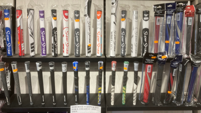 We have a fantastic range of grips available here in the Pro Shop, so you never have to worry about losing your grip on the club as you swing it. We stock grips from two of the biggest golf grip brands in the world, namely Golf Pride and Superstroke. We also offer a fantastic 9 for the price of 8 offer on all grips (cheapest grip free), so you can head into the season feeling confident as you stand over the ball.
